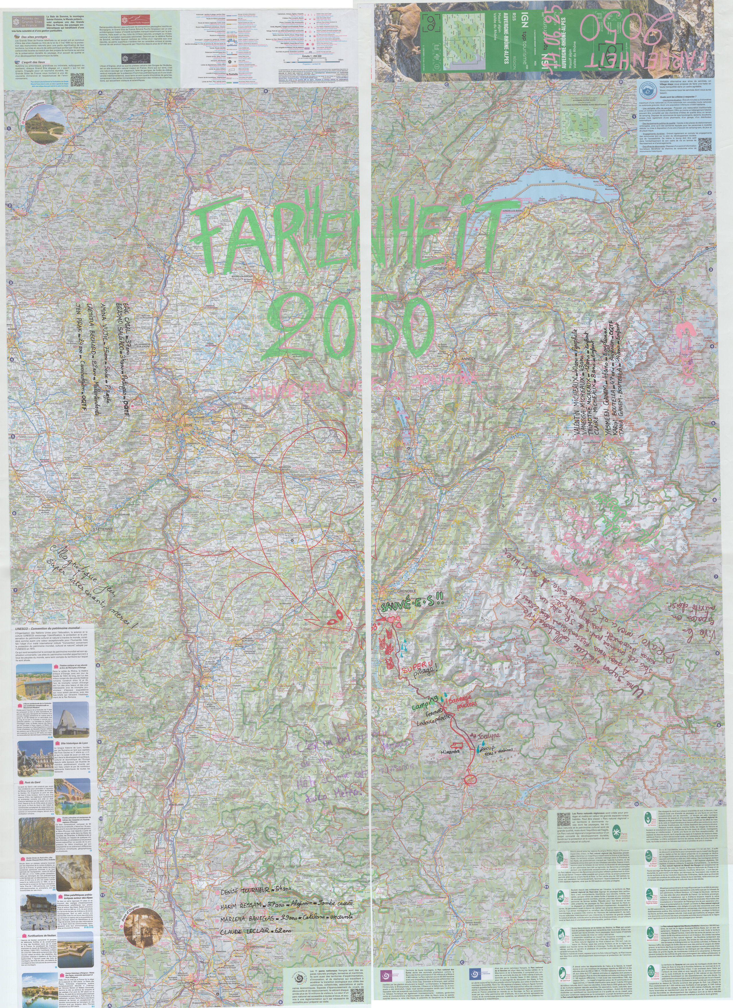 - Résumé du scénario : France, Juin 2050. Le changement climatique à fait son œuvre et vous subissez chaque été des vagues de chaleur pouvant s'étaler sur 3 semaines avec des nuits tropicales (+ de 20 degrés). Vous habitez alors dans la ville de Nice, dans le quartier Ariane, une des zones les plus touchés par les catastrophes naturelles et la précarité climatique. En effet, la politique de la ville de Nice a mis de côté les quartiers les plus pauvres, ce qui a conduit à de nombreux drames ses dernières années. Il y a un mois, un incendie a ravagé les **Rives du paillon** sur les hauteurs de la ville, et vous y avez perdu vos logements et tous vos biens. Depuis, vous êtes ballotées de gymnases en écoles, transformés en camp provisoire, sans jamais pouvoir vous projeter dans un avenir meilleur. Vous vous sentez indésirables, exclus, personne ne semble vous écoutez ou vouloir vous aider, et vos espérances de vie digne, déjà bien mince, s'amenuisent de jours en jours alors que l'été et ses dangers approchent ... Mais une lueur d'espoir vous parvient: un tract de la ville de Grenoble, réputé pour être avoir réussi à s’adapter et être un des bastions de fraicheur pendant la période estivale, vous parvient. Outre les camps de réfugiés climatiques mis en place là-bas durant l'été, l'une de vous y possède un contact qui pourrait vous assurer une place pérenne dans la Métropole.Avec une vingtaine d'autres réfugié.e.s, vous vous dépêchez d'organiser votre exil en car jusque-là bas. Malheureusement, suite à un éboulement, la route est impraticable et vous êtes dans l'obligation de vous arrêter au niveau de Gap, et de finir le trajet à pied. Une course contre la montre s'engage alors : en effet, d'ici quelques jours, certaines zones des Massif vont être interdites lors de la prochaine vague de chaleur et durant tout l'été. Mais au-delà de ça, vous le savez : toute personne hors des villes les plus adaptées vont courir de graves dangers à cause des conditions climatiques mortelles, et notamment, du Souffle du Dragon ...Vous allez devoir avancer tout en surveillant vos Rations d'eau et de nourriture, et en choisissant de protéger, ou non, les plus fragiles de votre groupe de réfugié.e.s...